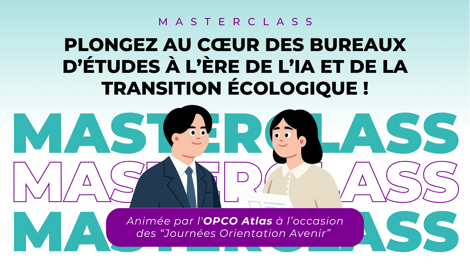 Dans le cadre des Journées Orientation Avenir (JOA), l’ECEMA organise, en partenariat avec l’OPCO Atlas, une Masterclass dédiée aux bureaux d’études face aux grandes transitions.